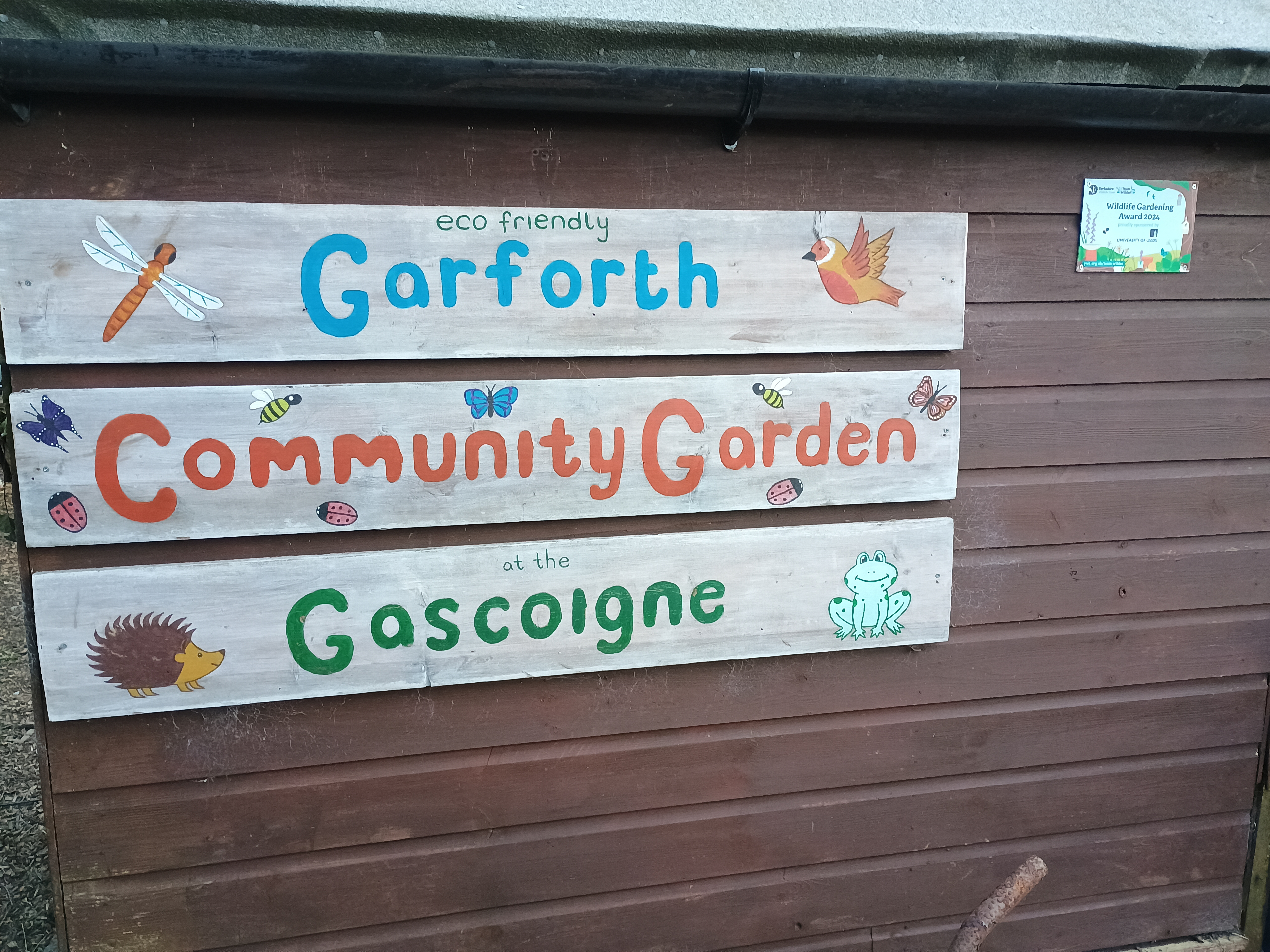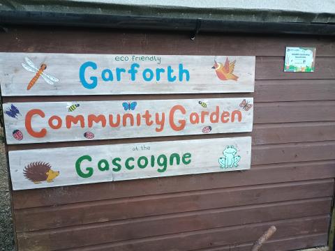 The Community Garden can be found at the bottom of the car park of the Lord Gascoigne pub in Garforth. There is a small gate for entry.